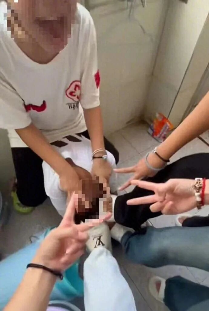据潇湘晨报此前报道,近日,有网友发布视频称在广西苍梧县石桥中学发生霸凌事件。根据网传视频,被欺负的女生跪在地上,有女生朝其头上泼水,一女生骑在她身上,还有三人把脚放在被欺负的女孩头上,比出了剪刀手手势。根据另一段视频,有女生扯住被欺负女生的头发,同时扇巴掌。